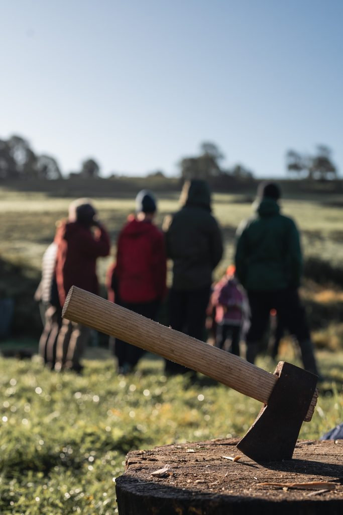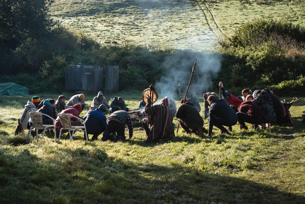 ‘What sets us apart from other men’s organisations is we work with nature and the natural environment as the primary place to support men on that journey towards a clear identity. We work with the elements, water, earth, air, and fire – using those four ideas as metaphors for personality, for identity, for emotions. Influenced by ecopsychology, environmental arts therapy, mythology and indigenous principles, the pre-empire way of thinking. Our animism is remembering our roots as animals, as ancient tribal people, our primal instincts, men and women walking the land connected to the seasons and the other species.’